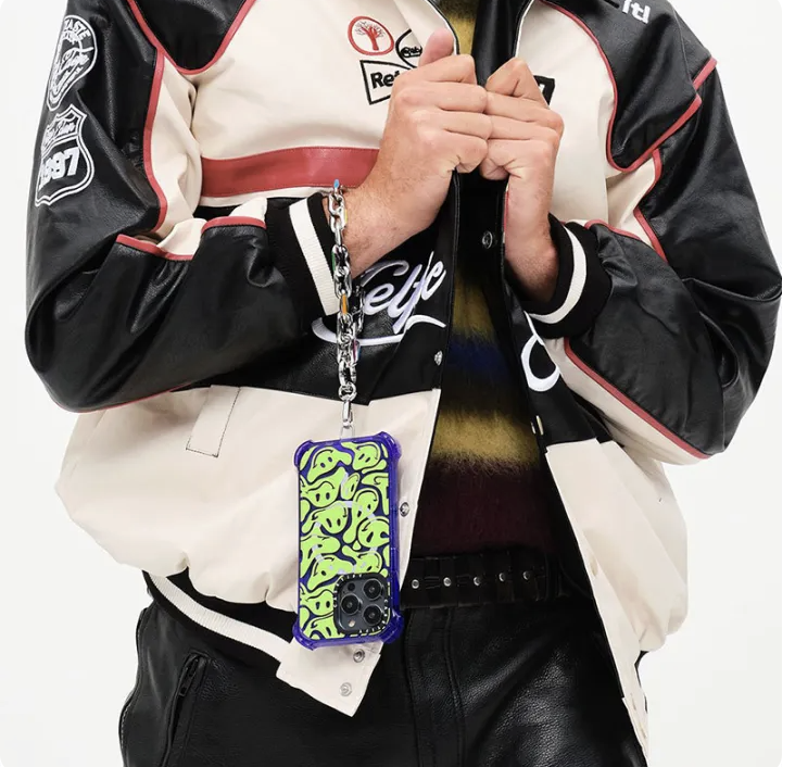 Tested to 20kg pull strength — stronger than any rope or fabric strap. Available in iconic CASETiFY gold, silver, and black finishes that match their Impact and Mirror cases perfectly. The designer phone charm every influencer is wearing in 2025.